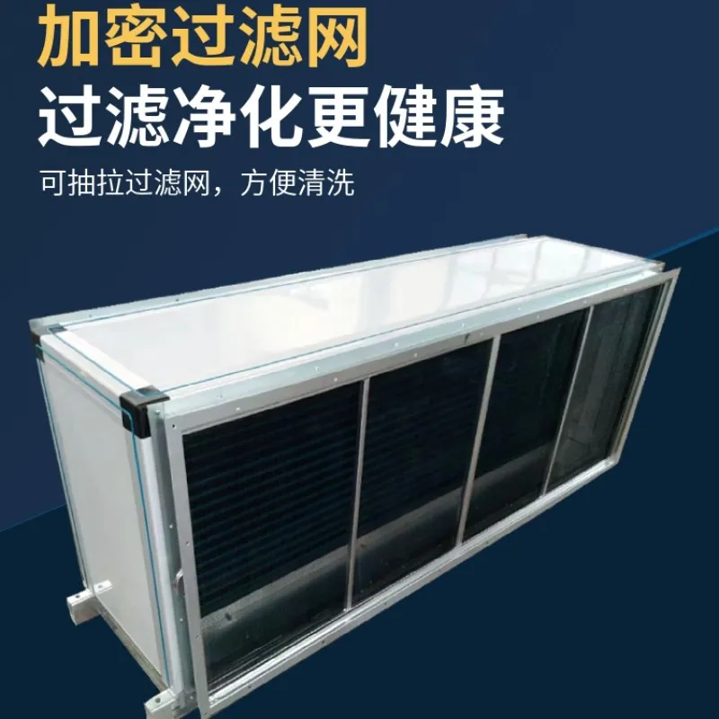德冷吊顶式表冷段换热箱主打高效换热功能,核心配置亲水铝箔翅片换热器 + 优质紫铜管,热交换面积大、换热效率高,同时紫铜管具备超强耐压性,保障冷热传输稳定。 箱体采用优质板材制作,安全抗压、经久耐用;内置加密可抽拉过滤网,过滤净化空气且清洁便捷。产品支持尺寸定制,可根据法兰口径、表冷器规格参数按需设计,还可加装 ABS 挡水板,适配住宅、商场、学校、写字楼、工厂等多场景空调系统,满足不同空间的冷热补充需求,厂家直销保障快速出货。