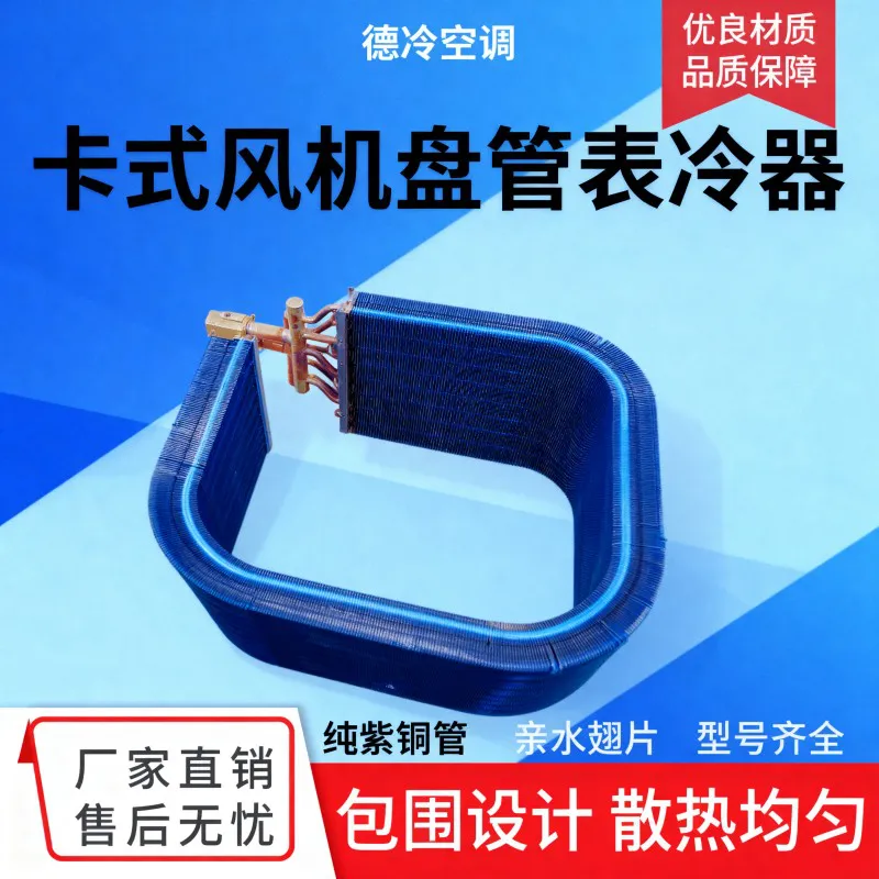 本产品为德州德冷空调专为卡式天花机适配的包围式表冷器,核心采用纯紫铜管 + 黄铜集水头 + 包围式亲水翅片,黄铜集水头顶压能力强,包围式翅片可实现环绕均匀换热,散热高效。