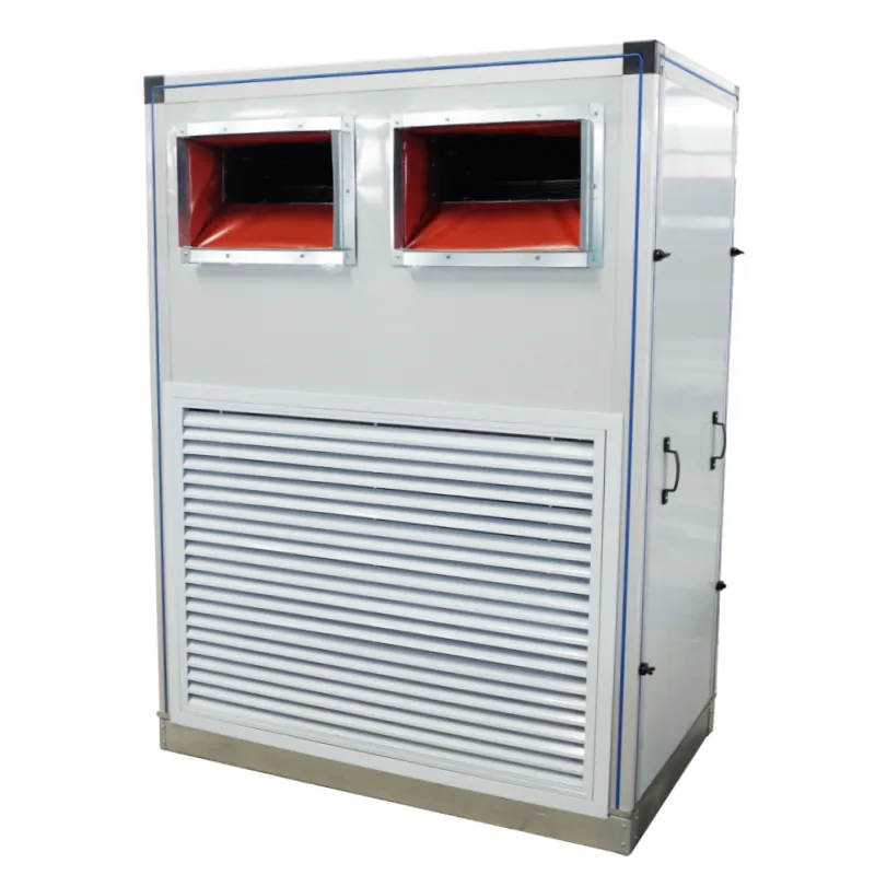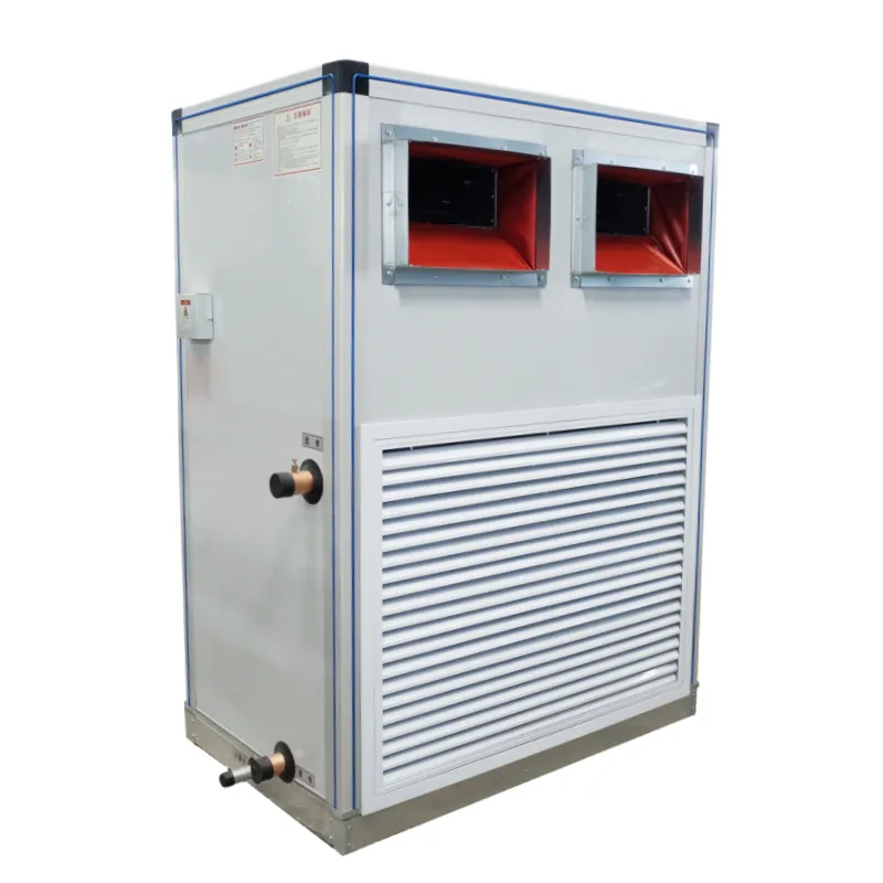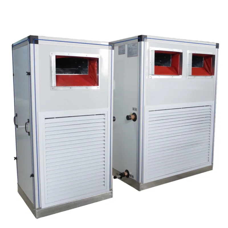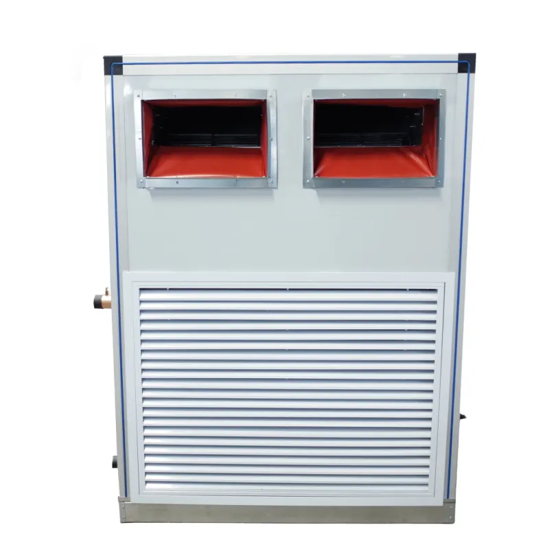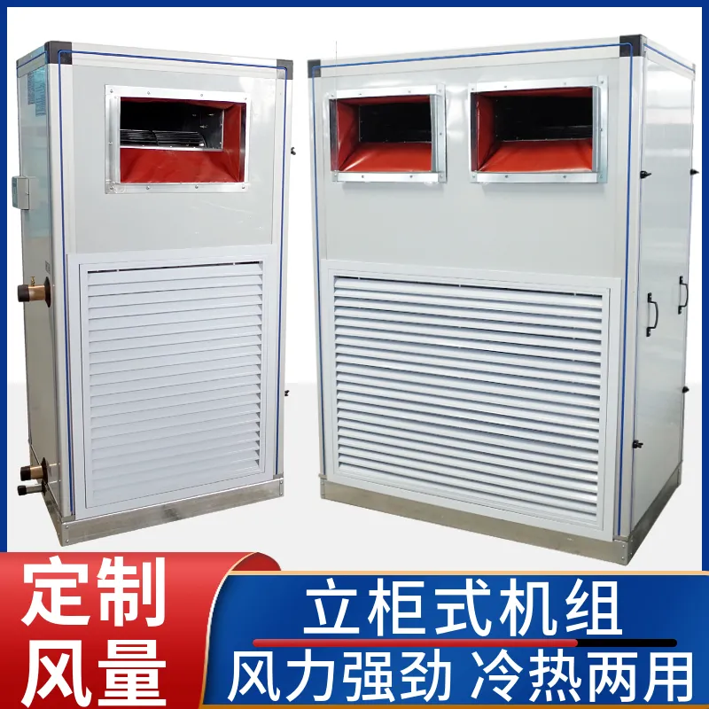 德冷立柜式空调机组风量覆盖2000-20000m³/h,制冷量15-150KW,制热量25-210KW,满足工业与商用空间温控需求。整机尺寸(长×宽×高)700×600×1200mm至1900×1200×2200mm,出风口尺寸可选320×200mm(单/双)、400×250mm(双)等,支持方形/圆形出风口定制。核心配置外转子离心风机(功率0.55-11KW)与纯紫铜亲水表冷器,高效换热;机身采用加厚镀锌钢板,防腐耐用,运行噪音低至55dB(A)。适配商场、车间、医院等场所,支持风管对接与多场景安装。