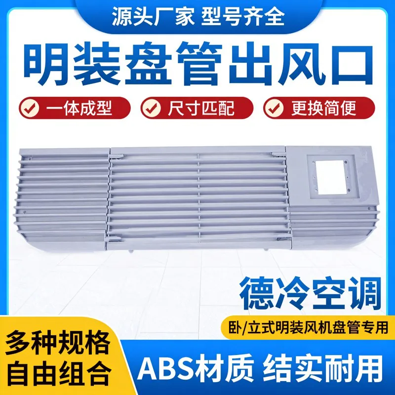 本产品为德州德冷空调专为明装风机盘管适配的 ABS 出风口,核心采用优质原材制作,支持多规格与组合搭配:
