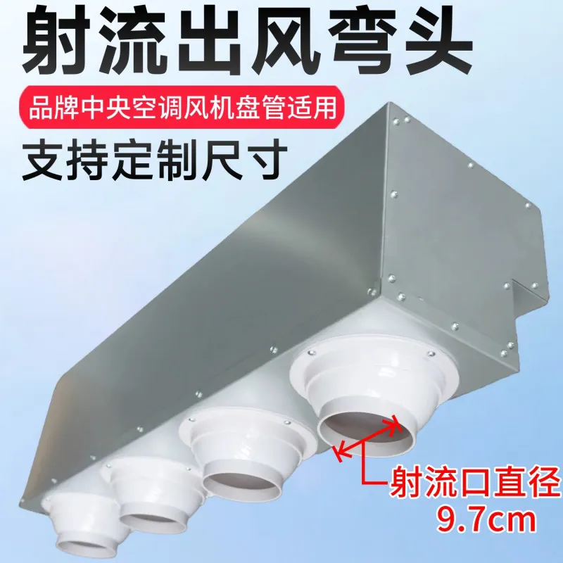 弯头箱体采用镀锌板材质,具备防腐耐磨、坚固耐用的特性;箱体内贴保温棉,可有效防止结露、减少风噪。产品设多型号匹配不同射流口数量:34 型号配 2 个、51 型号配 3 个、68 型号配 4 个,至 238 型号配 8 个,能适配不同空间的送风需求;同时支持定制尺寸,可精准匹配风机盘管的安装规格,是中央空调送风系统改造、优化的实用配套设备。