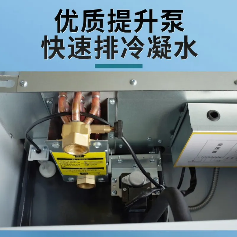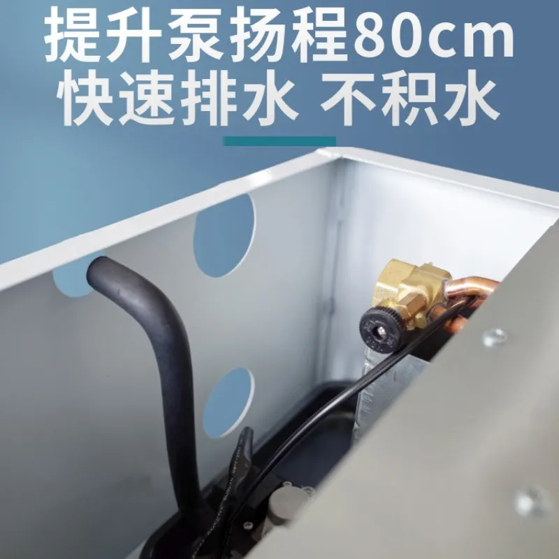 本产品为德州德冷空调卧式明装款风机盘管,核心配备扬程 80cm 的冷凝水提升泵 + 浮子开关,可自动触发快速排水、避免积水;采用纯紫铜管亲水表冷器,换热效率优异;搭载铜芯电机,动力澎湃且运行稳定;配置加宽出风口实现大风量送风,回风口配滤网可洁净空气、便于清洁;箱体选用优质镀锌板材并经静电喷塑处理,美观耐用。