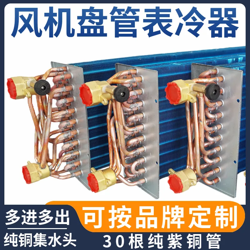 核心采用 30 根 φ7mm 纯紫铜管(无缝材质,超强耐压、换热效率快),搭配高密度亲水铝箔翅片(紧凑结构,换热更高效),纯铜集水头保障水流稳定。支持定制尺寸及按品牌适配,适配各类风机盘管的换热场景,是高要求环境下的可靠换热部件。