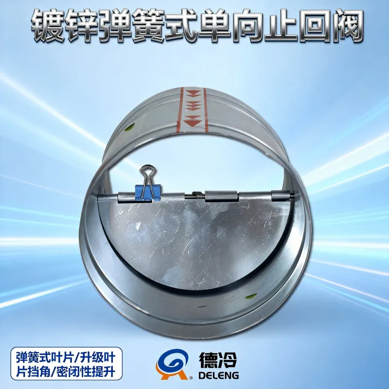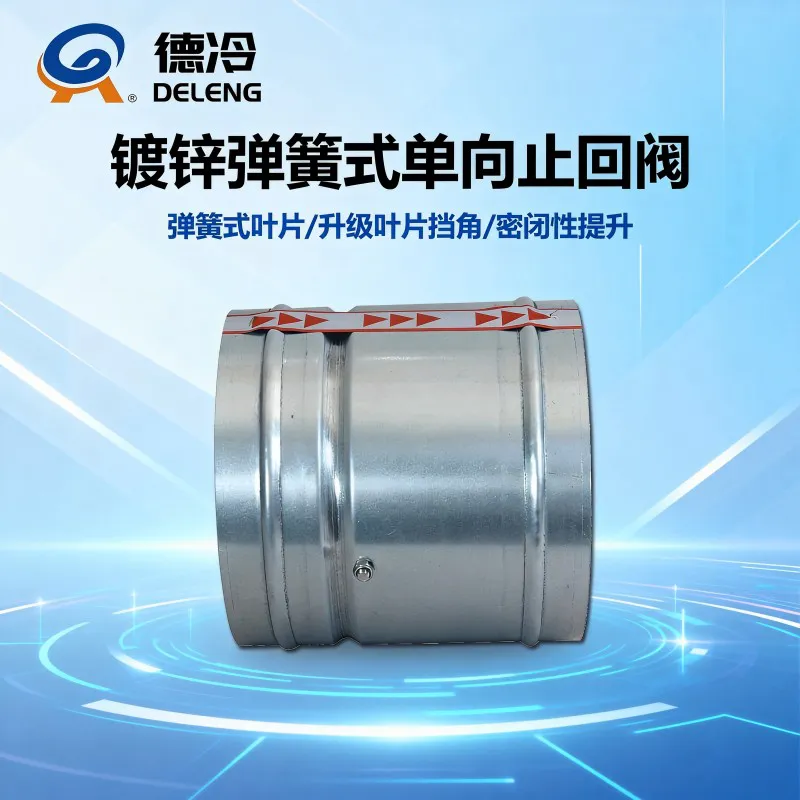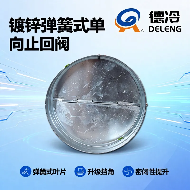 德州德冷 YTDF 系列镀锌止回阀,是工厂厂房、民用建筑通风与空调净化工程的核心末端配件。阀体采用耐指纹镀锌板,耐腐蚀且外观高档;叶片为铝合金材质,搭配经多代改进的弹簧式叶片,结构稳定更耐用。