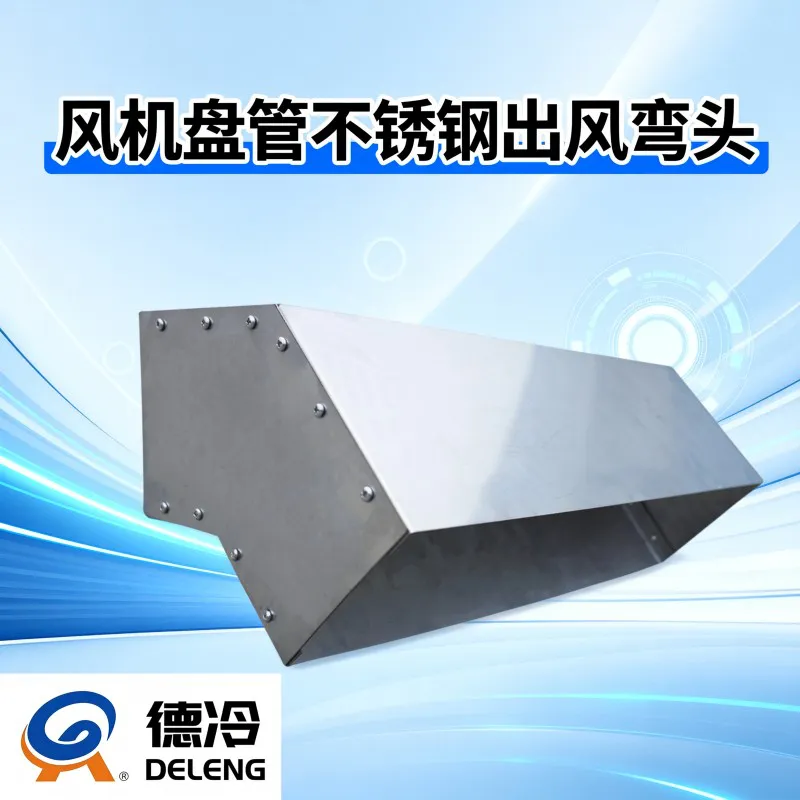 本产品为德州德冷出品的 304 不锈钢通风弯头,采用 0.9mm 厚度 304 不锈钢材质,具备不生锈、防腐蚀的特性,包含 45 度、90 度两种角度类型可选,适配不同通风管道的出风方向调整需求。