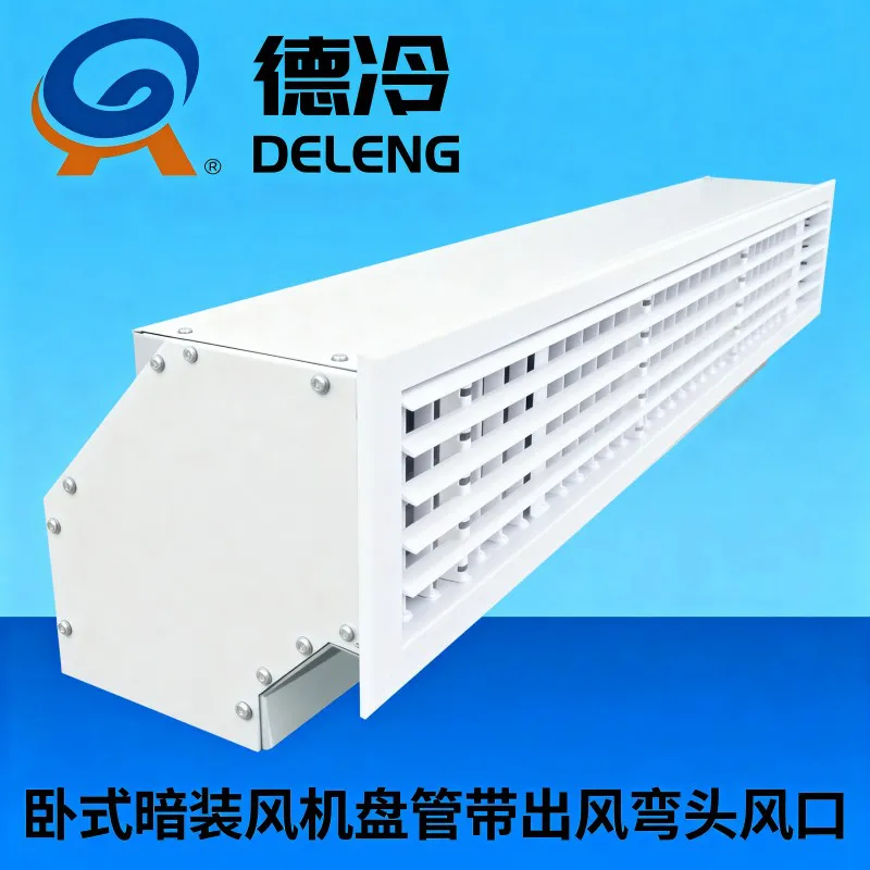 本产品是德州德冷专为风机盘管打造的弯头配出风口配件,集弯头与出风口功能于一体,可实现侧出风改下出风的需求。弯头采用优质镀锌板材质,具备防腐蚀、抗氧化特性,耐用性强;出风口为优质 ABS 材质,出风百叶支持角度调节,送风方向更灵活。